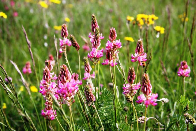 Immer wieder Massenvorkommen von Orchideen und blumenübersäte Wiesen. Schön auch die Fahrt durch die engen Alleen –