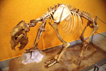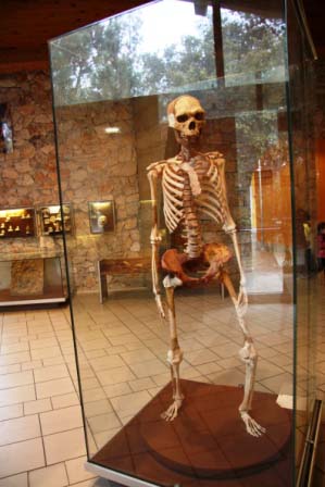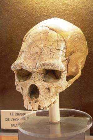 von Skelettteilen des Tautavel-Menschen in der Höhle von Arago. Im Museum findet man neben einer Nachbildung dieser