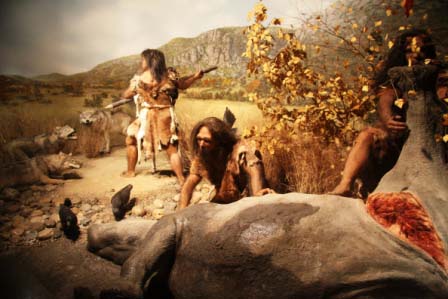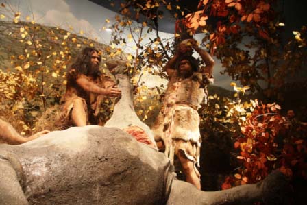 Höhle zahlreiche Dioramen zum Leben des Tautavel-Menschen, Kopien der Skelettfunde, Tierskelette.