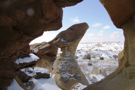 Nach einem trockenen Tag und ganz frĂŒhmorgens bei Frost gelingt es, das Gebiet in Richtung der Bisti
